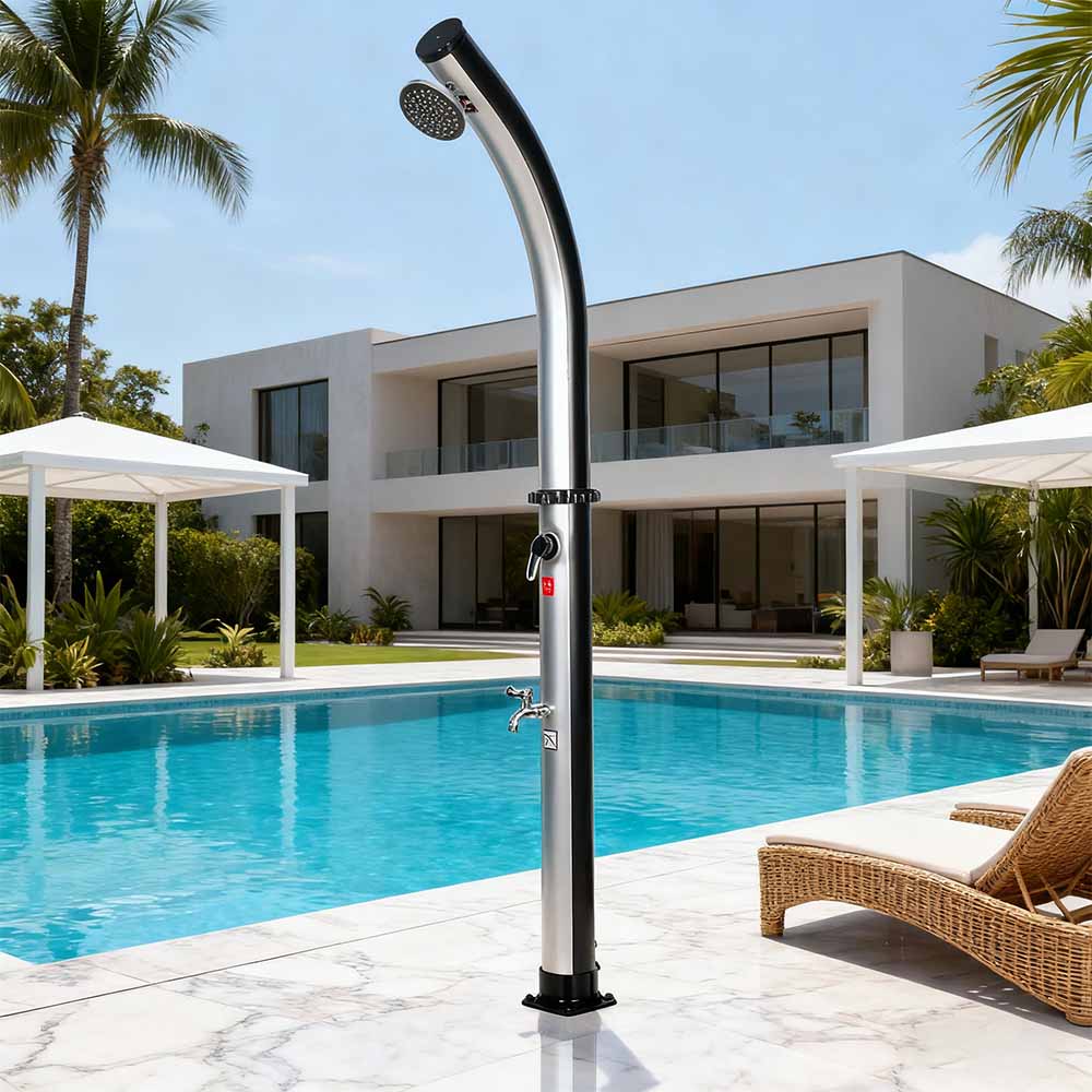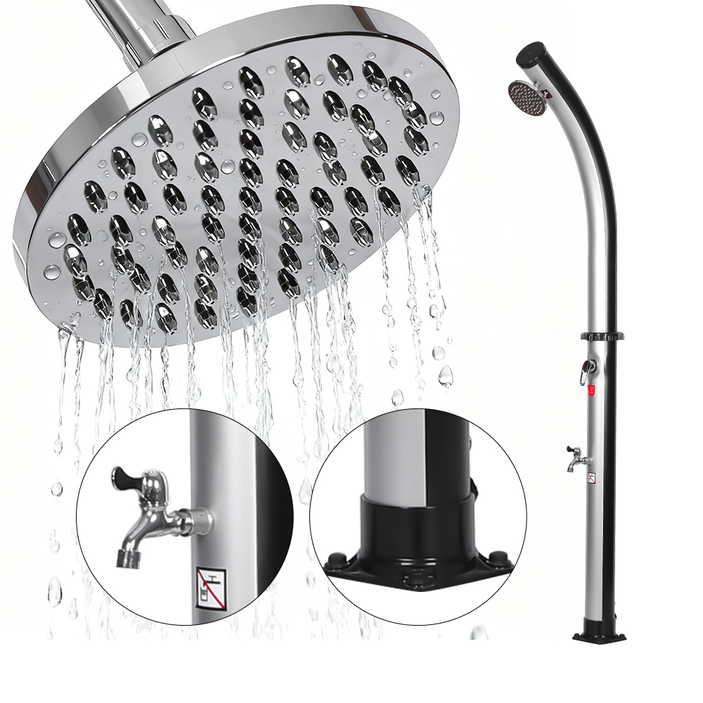 Po naplnení sprchového potrubia záhradnou hadicou sa voda prirodzene zohreje na slnku a integrovaná armatúra umožňuje jednoduché nastavenie na vami preferovanú teplotu. Táto 18L voľne stojaca vonkajšia solárna bazénová sprcha LY18L02 s objemom 18 l, navrhnutá pre všestrannosť, je ideálna na plážové výlety, relax pri bazéne alebo výlety na vidiek, vďaka čomu je vynikajúcou voľbou pre hotely, dovolenkové domy a bungalovy, ktoré poskytujú osviežujúci komfort kdekoľvek. Je tiež vybavený pohodlnou hadicovou prípojkou pre bezproblémové plnenie a vypúšťacou zátkou pre rýchle vyprázdnenie, čo zaisťuje bezpečnú a jednoduchú prípravu na zimné uskladnenie.