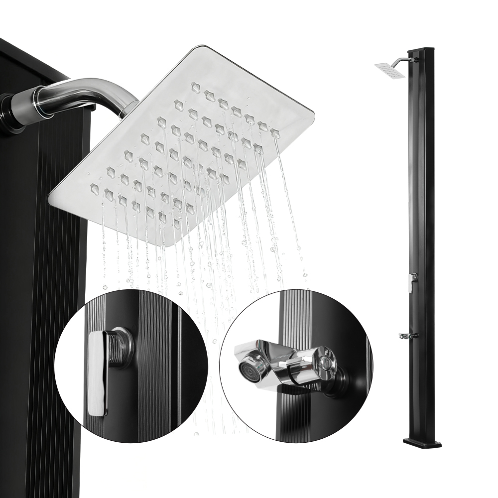 Tento LY30L02 vonkajší sprchový stojan na dažďovú sprchu s jednou pákou je vybavený 30-litrovou hliníkovou sprchovou rúrou, ktorá poskytuje dostatok vody pre pohodlný a osviežujúci zážitok zo sprchovania, vďaka čomu je ideálny na použitie v záhrade alebo vonku. Jednopáková zmiešavacia batéria umožňuje rýchle a jednoduché nastavenie teploty, čo umožňuje používateľom nastaviť teplotu vody na preferované nastavenie. Veľká dažďová sprchová hlavica je vybavená integrovaným guľovým kĺbom, ktorý sa otáča o 180°, čím sa zvyšuje chladiaci efekt a zjednodušuje sa inštalácia pre väčšie pohodlie a komfort.
