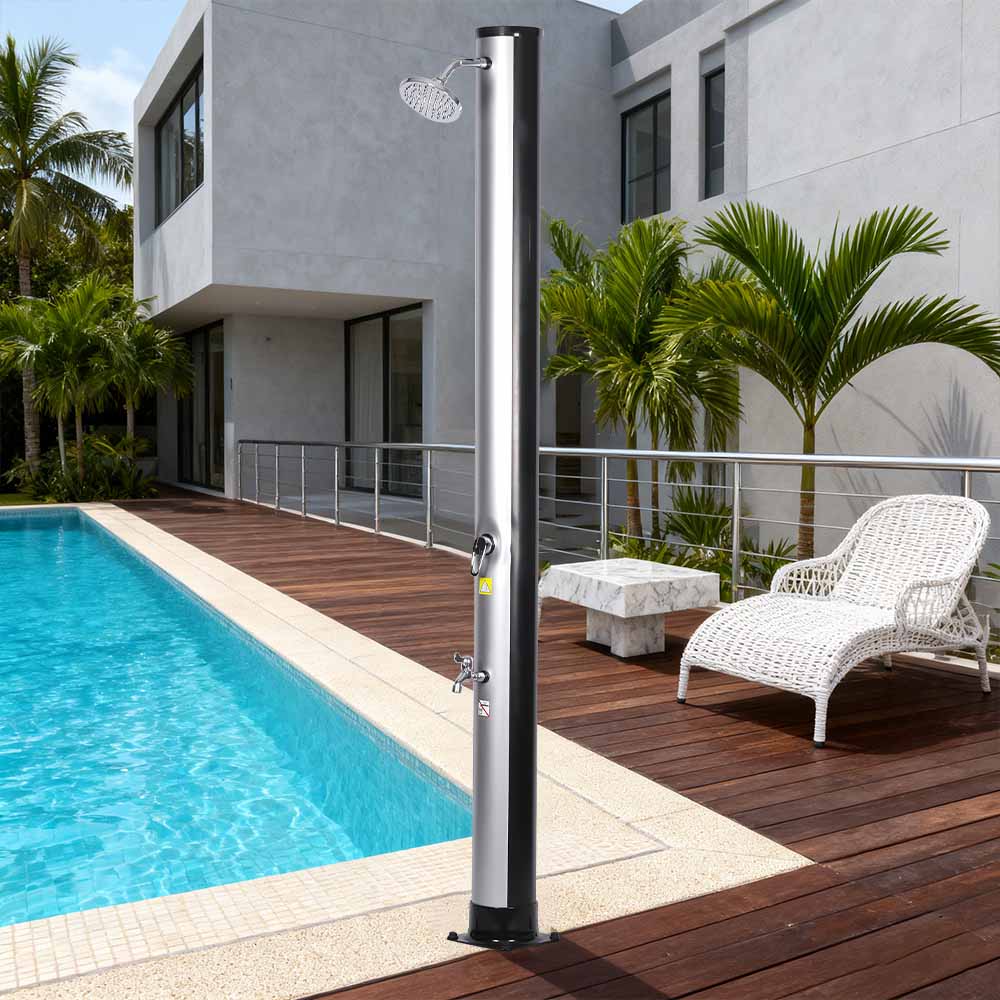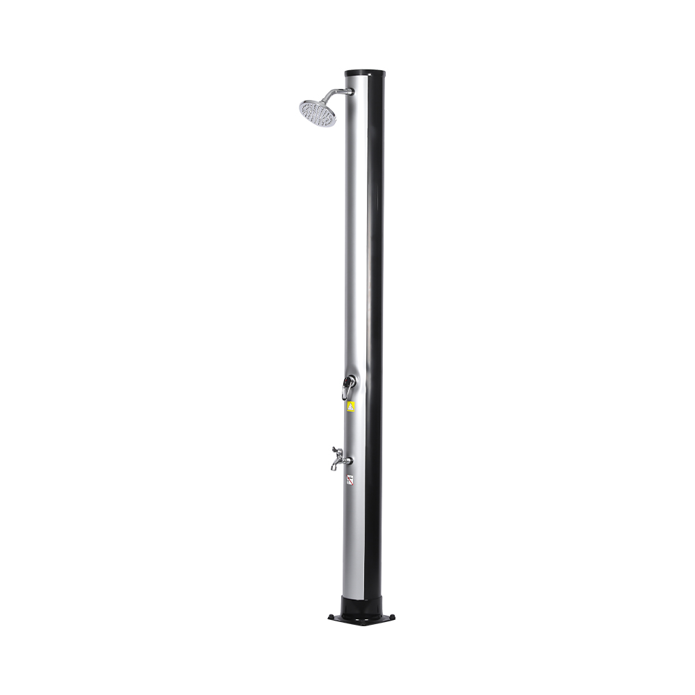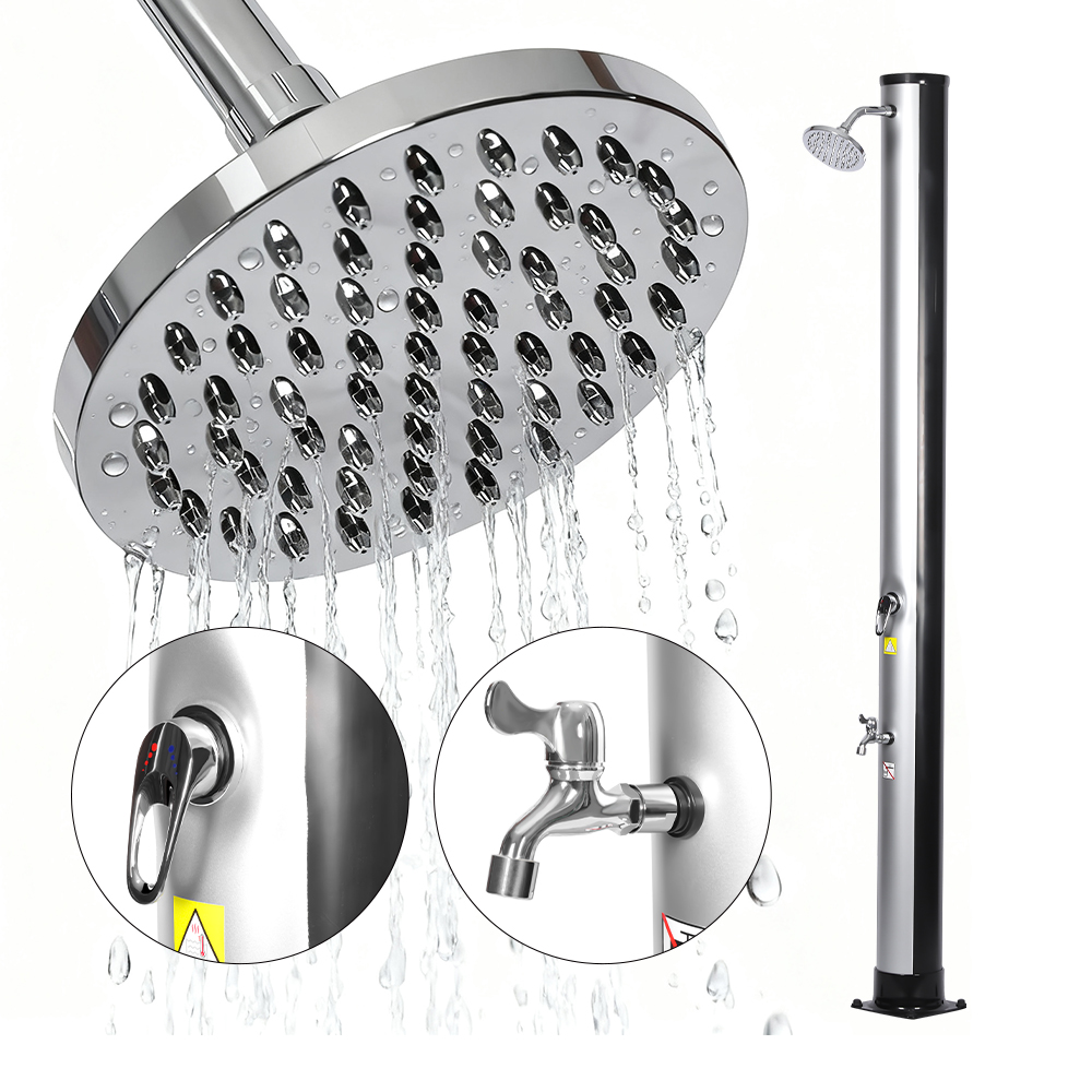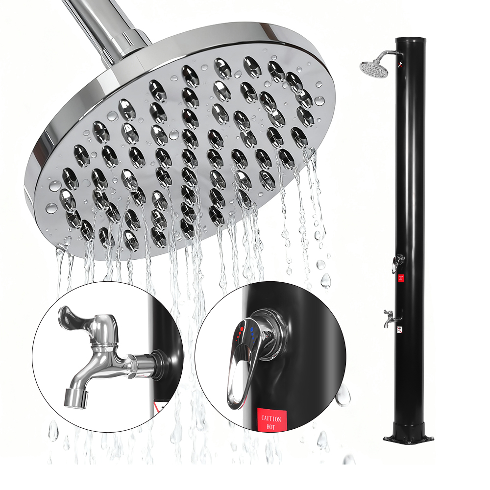 Veľkoryso dimenzovaná sprchová rúrka tejto prenosnej vonkajšej ekologickej solárnej sprchy LY35L06 využíva slnečnú silu na ohrev vody až na 60 °C, nevyžaduje žiadnu elektrinu a ponúka ekologické riešenie pre vonkajšie kúpanie. Jednoducho pripojte štandardnú záhradnú hadicu na naplnenie sprchovej rúrky a celá rodina si môže užiť revitalizujúcu sprchu na záhrade, pri bazéne alebo na výlete. Praktická vstavaná kovová vanička udrží základné veci pri sprchovaní, ako je mydlo a šampón, na dosah, zatiaľ čo drenážne štrbiny v spodnej časti zabraňujú hromadeniu vody, čím zaisťujú čistý a príjemný zážitok. Dažďová sprchová hlavica otočná o 360°, namontovaná na integrovanom guľovom kĺbe, vám umožňuje jednoducho nastaviť smer prúdu vody, čím vytvára príjemný chladivý pocit, zatiaľ čo prídavný kohútik na oplachovanie nôh poskytuje pohodlný spôsob rýchleho osvieženia. Táto sprcha je navrhnutá pre pohodlie a dá sa ľahko rozobrať pre kompaktné a priestorovo úsporné skladovanie mimo sezóny alebo na prepravu na cestách.