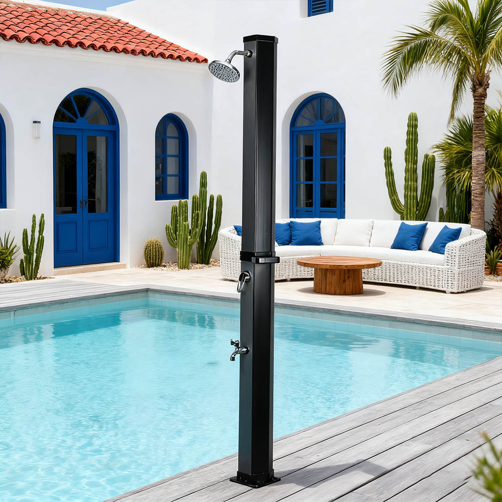 Táto vonkajšia solárna sprcha LY35L09 s jednoduchým prenášaním a transportom je navrhnutá na všestranné použitie a ponúka pohodlnú teplú sprchu na záhrade, pri bazéne alebo pri kempovaní. Nespolieha sa na žiadny externý zdroj energie a užíva si pohodlie prirodzeného ohrevu slnečným žiarením. Vyznačuje sa štandardnou prípojkou záhradnej hadice pre rýchle a jednoduché plnenie a vypúšťacia zátka umožňuje ľahké vyprázdnenie sprchového potrubia pred zimou, čím zabraňuje poškodeniu nahromadenou vodou. Jeho odnímateľný dizajn umožňuje rýchlu demontáž a kompaktné skladovanie, vďaka čomu je ideálny na skladovanie šetriace miesto, keď sa nepoužíva, a zároveň sa ľahko prenáša a prepravuje, čo vám umožní vychutnať si pohodlie vonkajšej sprchy kedykoľvek a kdekoľvek.